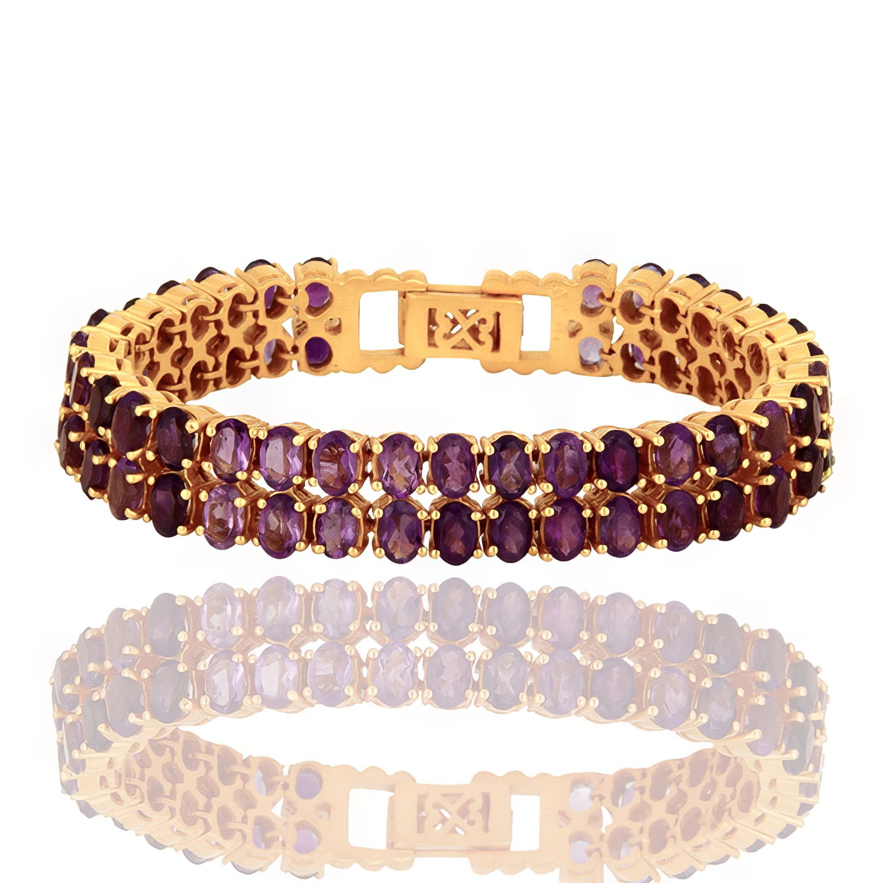 18K Gold plated (shiny finish) on Solid Sterling Silver Tennis Bracelet.