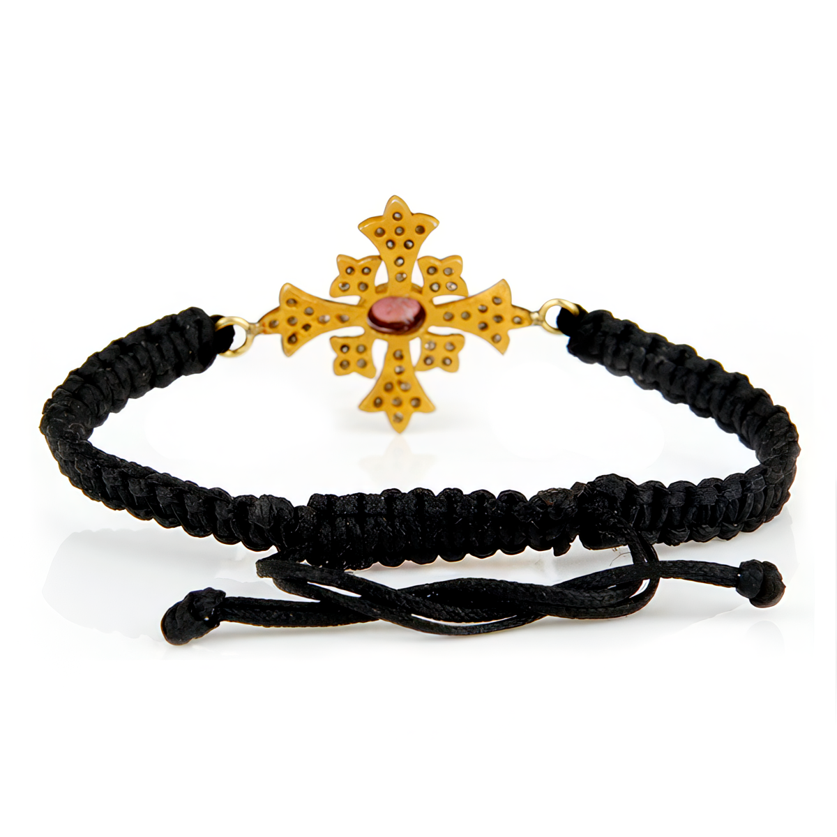 The "Knightsbridge" bracelet combines elegance and regal charm with its ornate cross motif, embellished with shimmering genuine diamonds for a luxurious touch. At the heart of the cross lies a captivating pink tourmaline, adding a pop of color and refinement. The intricate metalwork beautifully frames the gemstones, enhancing their brilliance. The high-quality, braided black cord band provides a modern, edgy contrast to the classic design. Versatile and sophisticated, the "Knightsbridge" bracelet effortlessly elevates any outfit, making it perfect for both special occasions and everyday wear. Shortest bracelet length 18cm or 7inches.