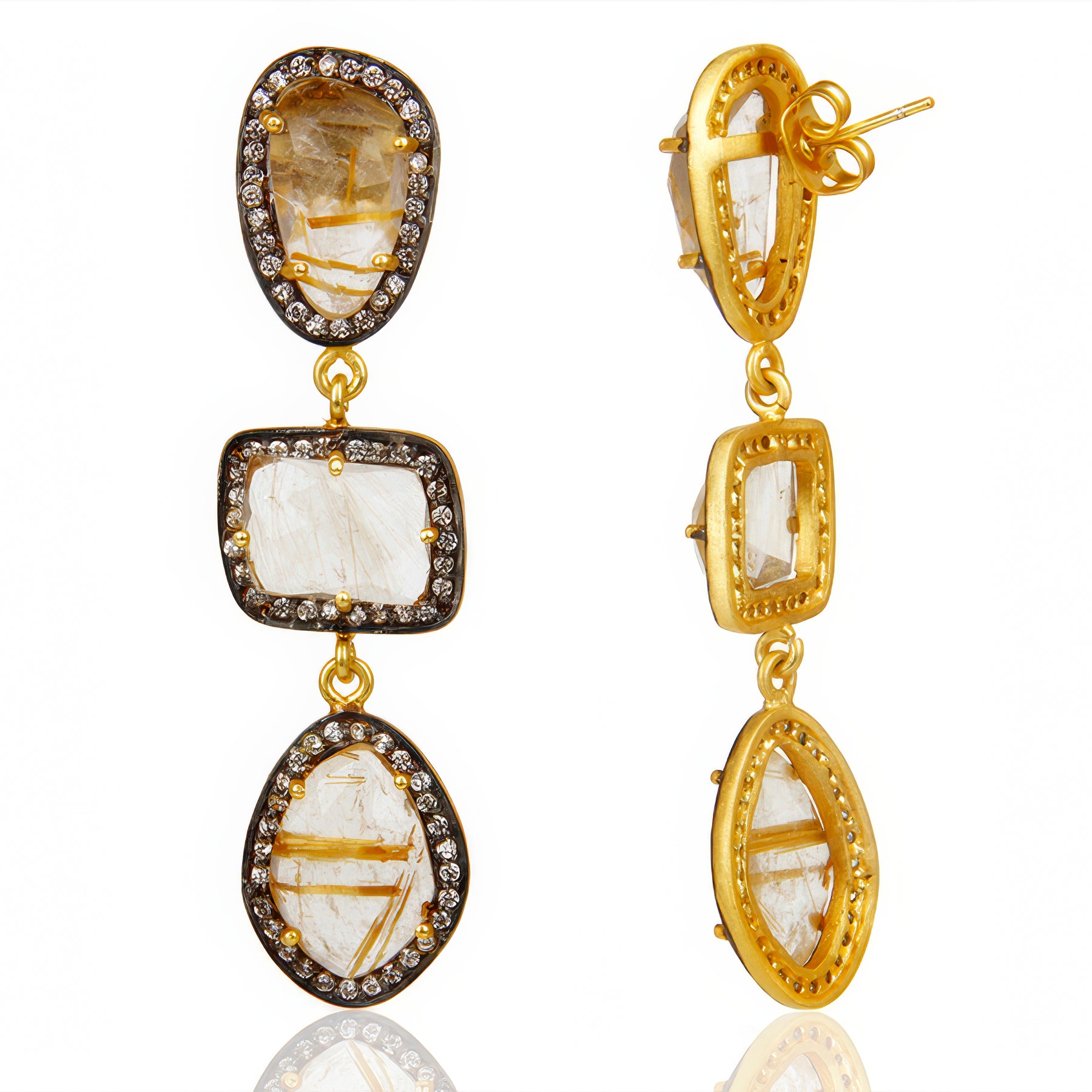 Handmade earrings 18k gold and made of brass. Gross Weight 11.86g