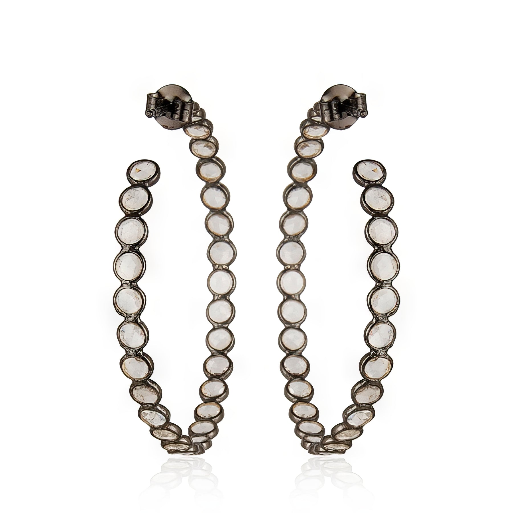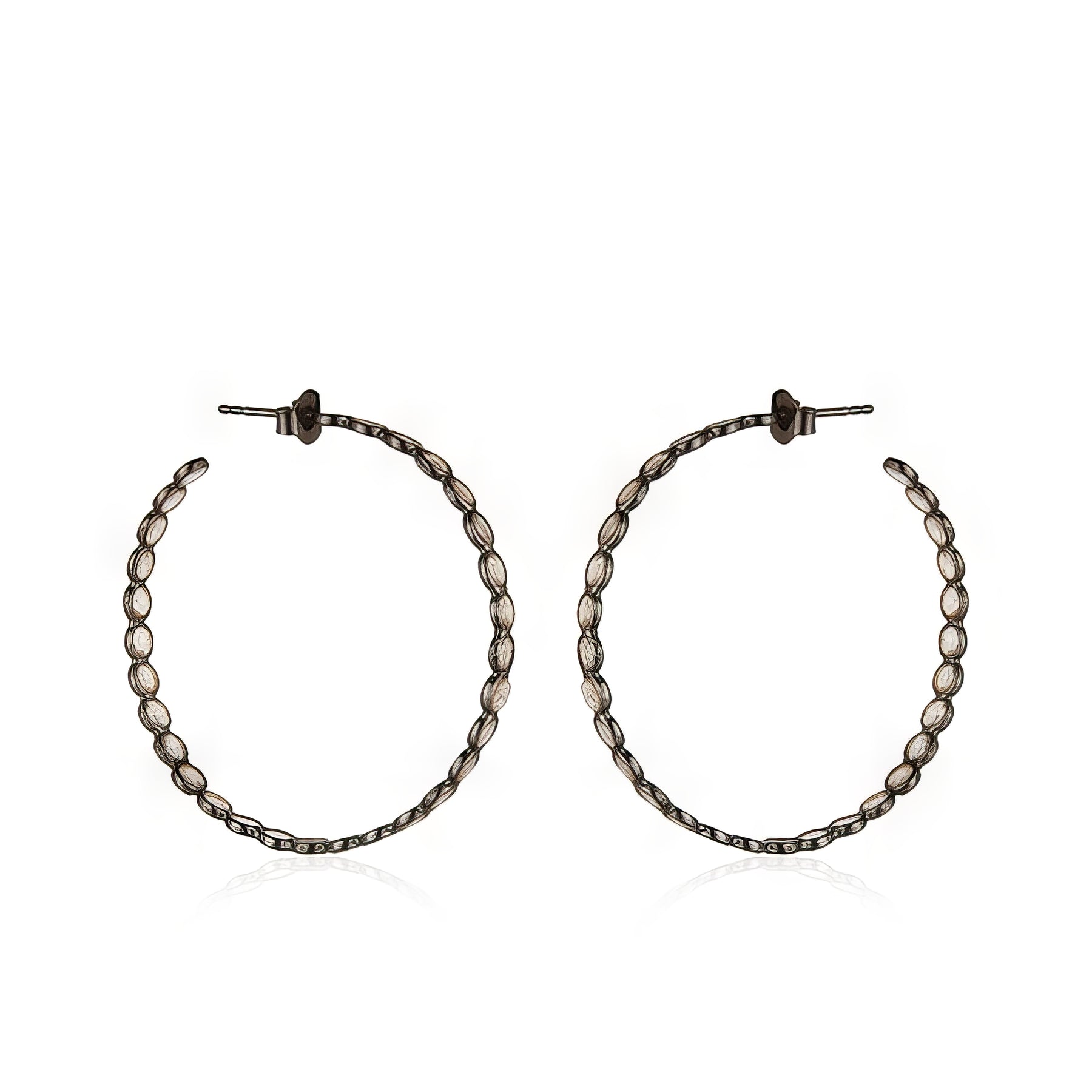 Black Rhodium plated on solid Sterling Silver hoop earrings.