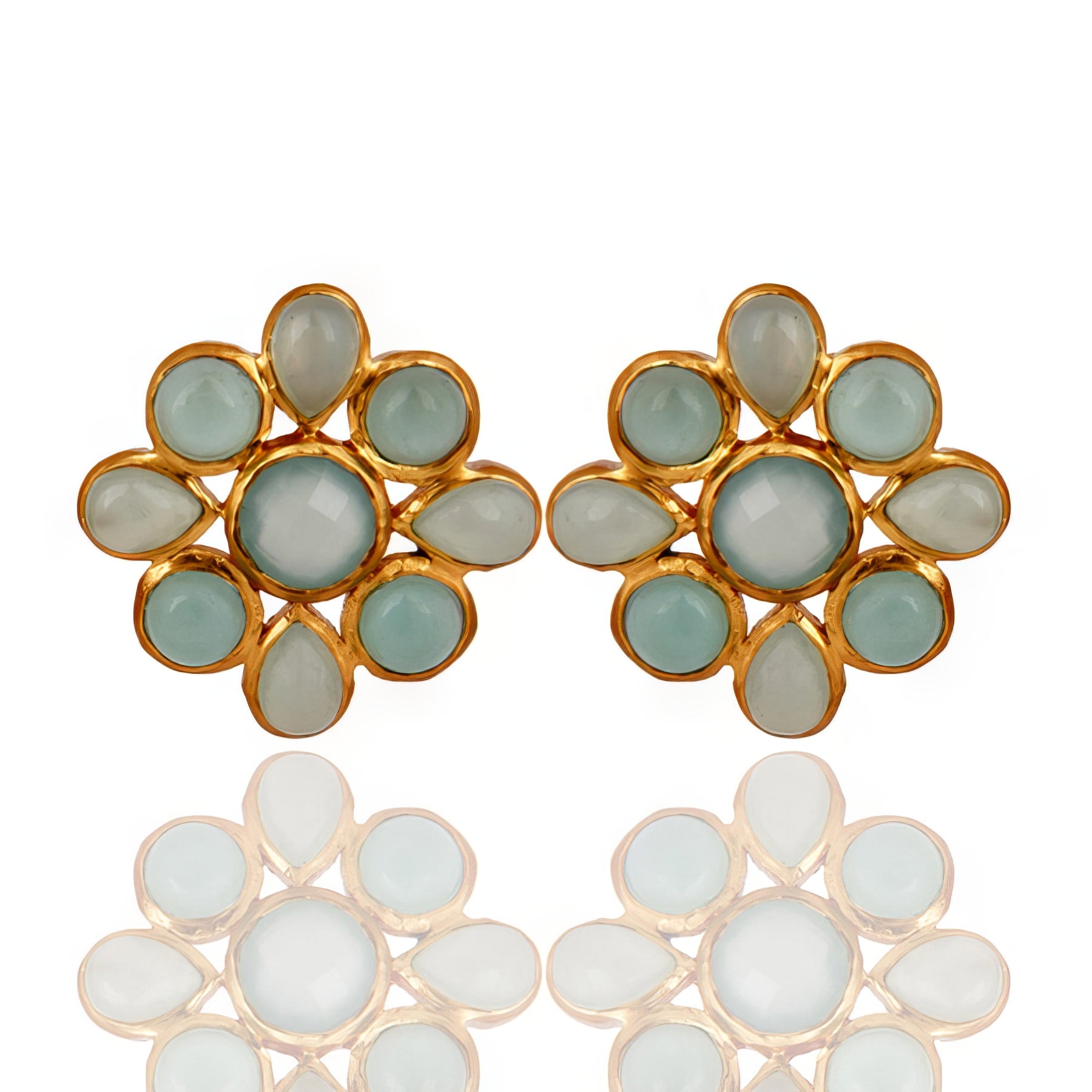 Aqua chalcedony briolette round 8.00mm 3.85ct, cabushion pear 7x5mm 7.30ct, cabushion round 6.00mm 9.25ct.
