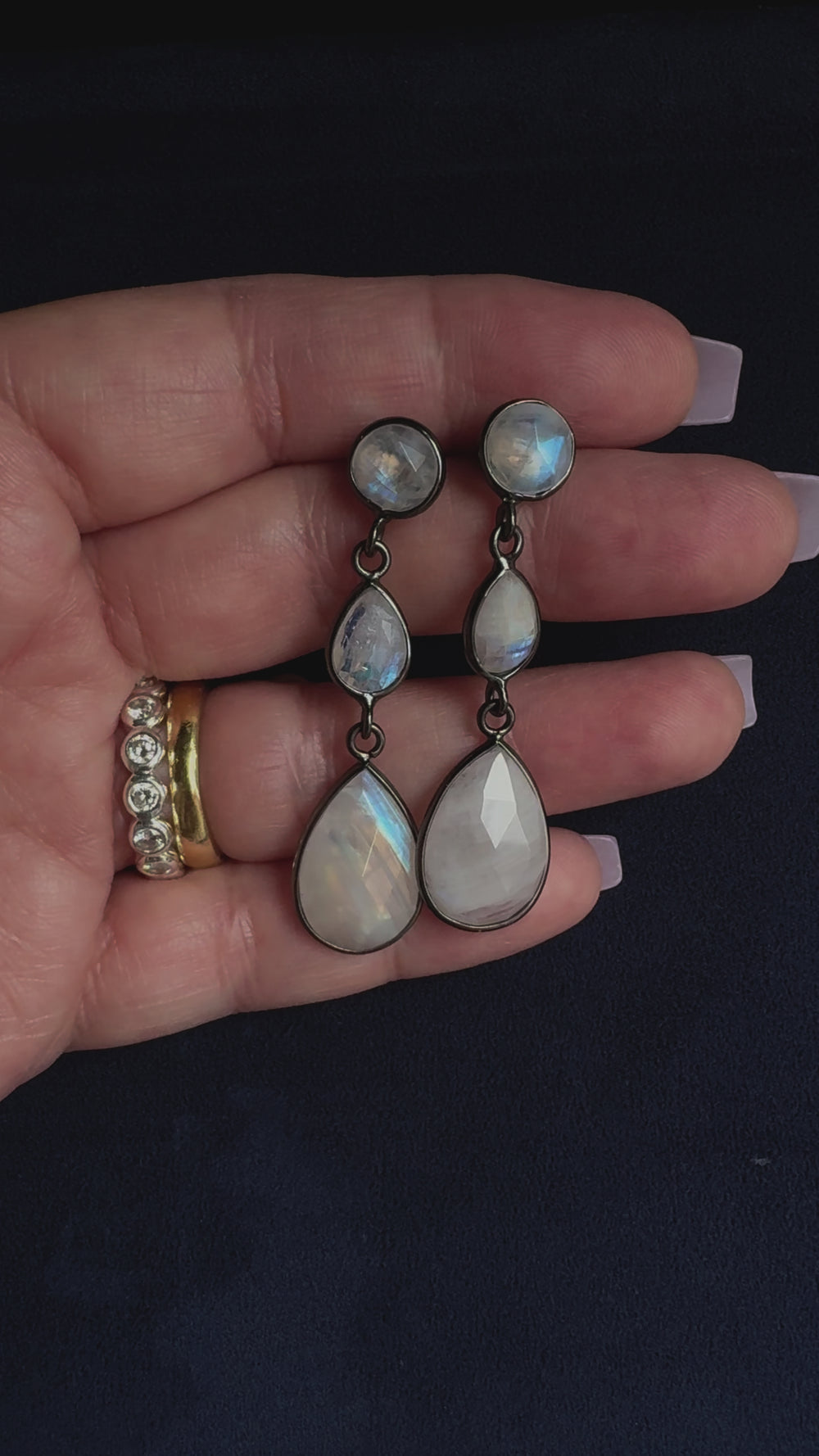Rainbow Moonstone Pear shape, size 12X18 mm and weight 17.600ct, size 7x10 mm and weight 3.880ct, Round shape, size 8.00 mm and weight 4.330ct