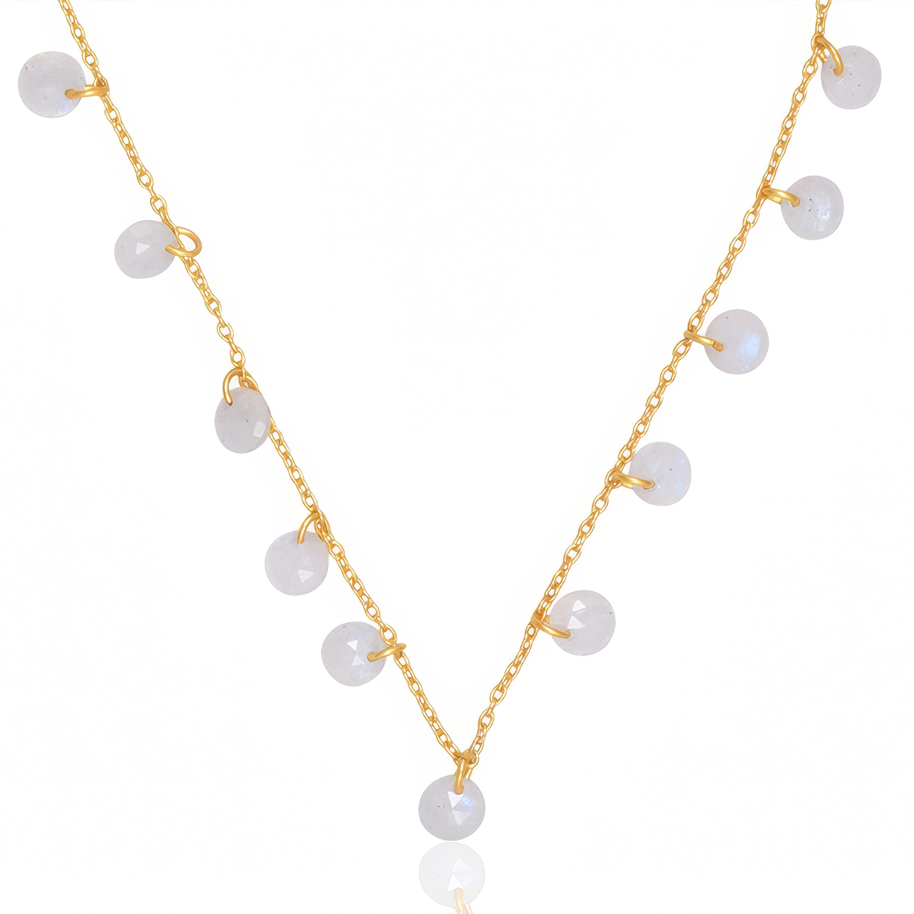 Our 18K gold plated on solid Sterling Silver Twilight Necklace. It features Briolette Cut.