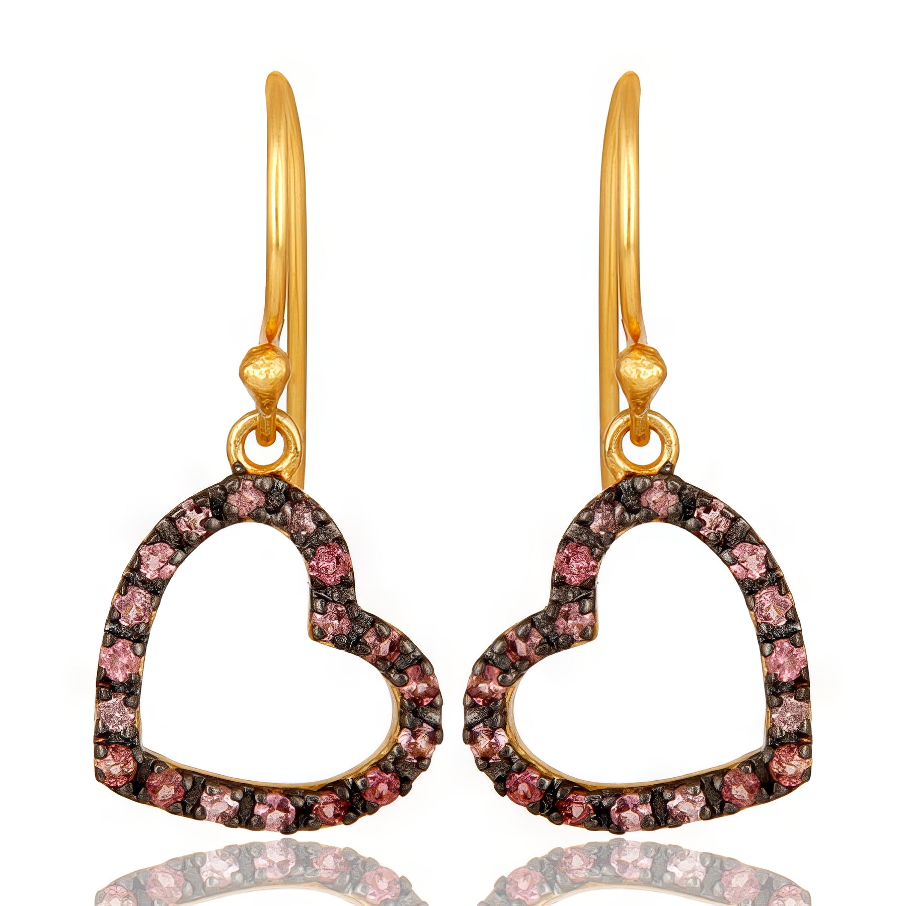 Pink Tourmaline Dangly Hearts Earrings