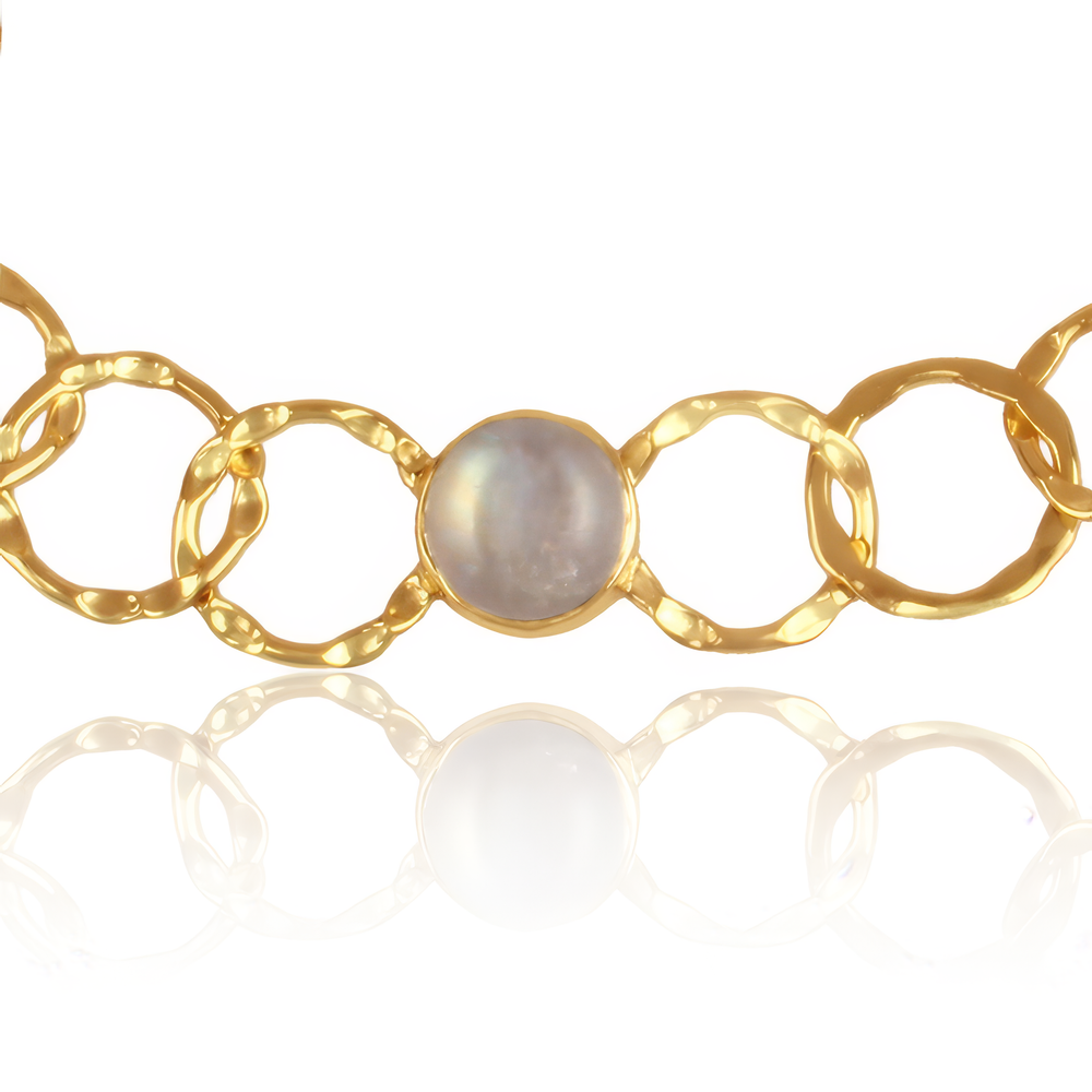 18K Yellow Gold-Plated on Solid Sterling Silver Hammered Links Bracelet.