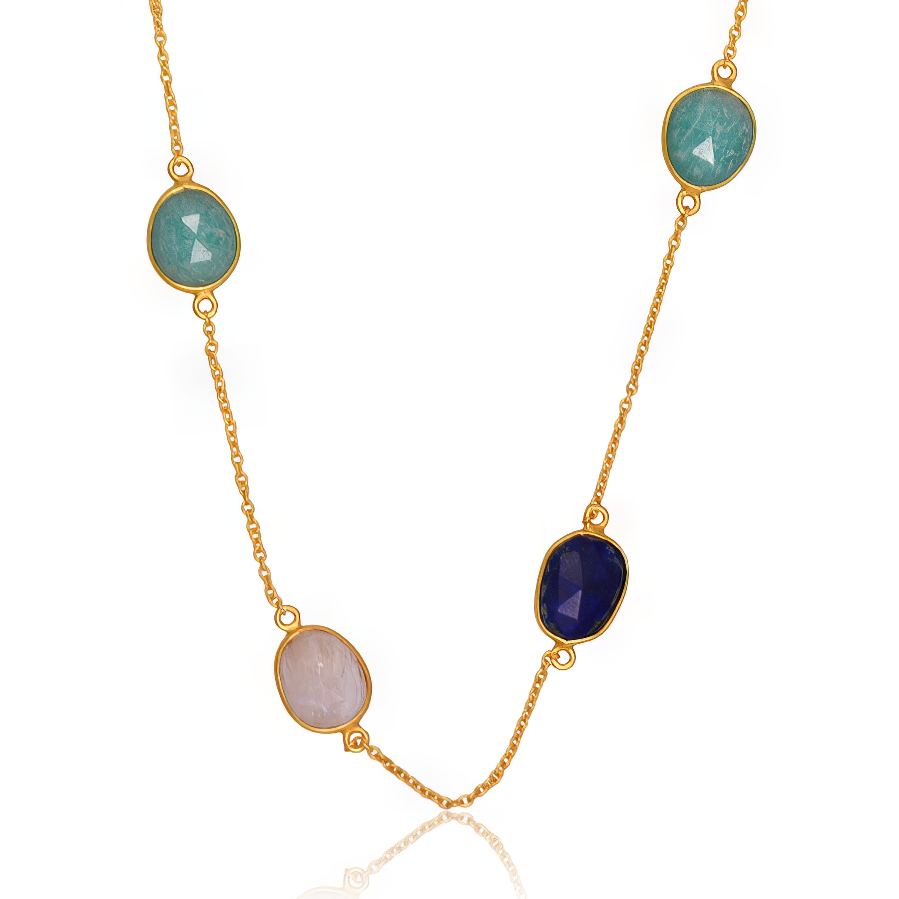 Amazonite 13.550ct, Lapis 7.950ct, Labradorite 8.300ct, and Rainbow Moonstone 10.150ct.