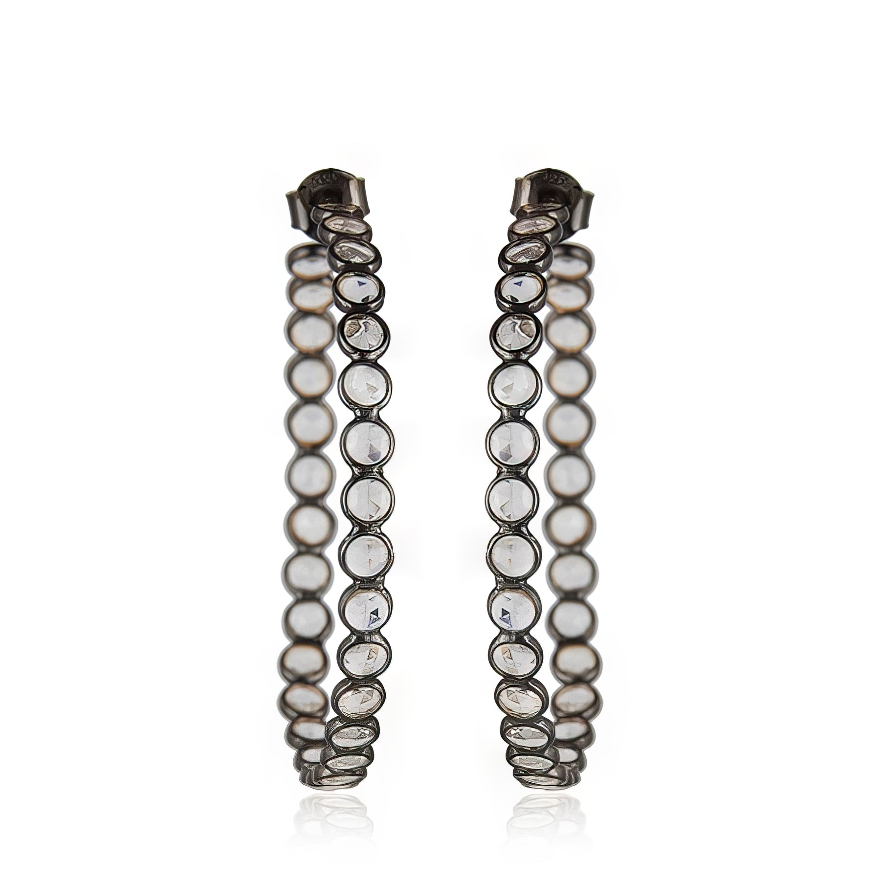 Black Rhodium plated on solid Sterling Silver hoop earrings.